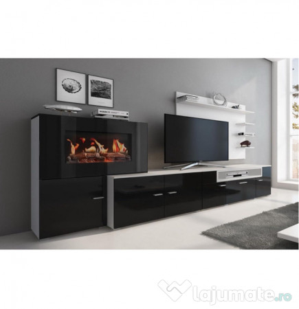 Vând set mobilier de living modern, stil scandinav, șemineu pe bioetanol, finisaj negru lucios , în stare foarte bună.