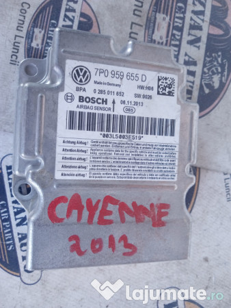 Modul airbag Porsche Cayenne 2015. Cod(uri): 7P0959655D. Piesele comercializate sunt originale, provenite din dezmembrari. Dispunem de o gama larga de piese multimarca. Piesele sunt verificate inainte de a fi puse spre vanzare. In caz de neconformitate piesa se poate returna. Va rugam sa verificati disponibilitatea pieselor telefonic. Trimitem in tara prin curier.
