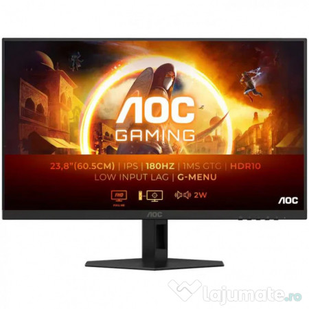 Monitor Gaming AOC, 23.8", IPS, FHD, 180Hz, 1ms, HDR10, FlickerFree, Boxe 2W x 2, HDMI, DisplayPort, Negru