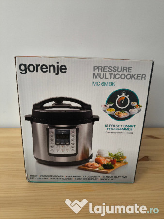 Multicooker Gorenje MC6MBK, 1000 W, 6l, 15 programe, Program de gatit sub presiune, negru-argintiu
