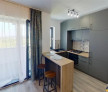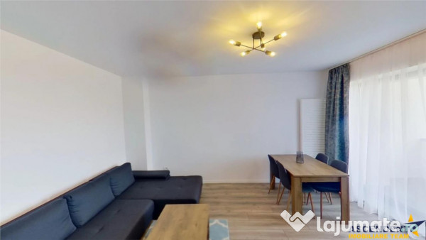 Imobilul dispune de un hol spatios cu acces la cele doua bai, un living cu bucatarie complet echipata, inclusiv cu masina de spalat vase, un dormitor mobilat modern, o baie cu cada si un grup sanitar suplimentar. Oferta este completata de un balcon generos tip logie, cu vedere superba.