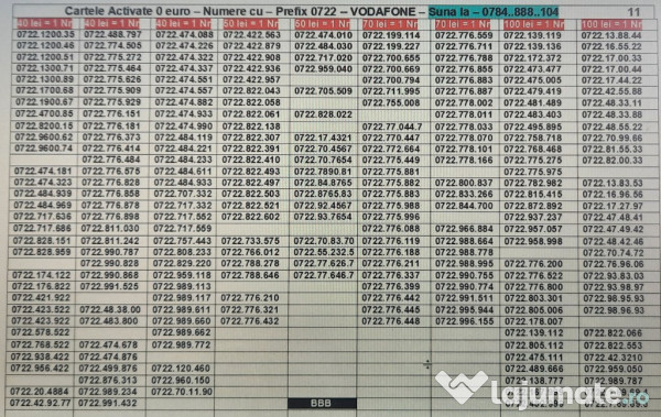 Vand - Cartele Vodafone cu Numere Ușor de Reținut cu prefix 0722 și nu numai.