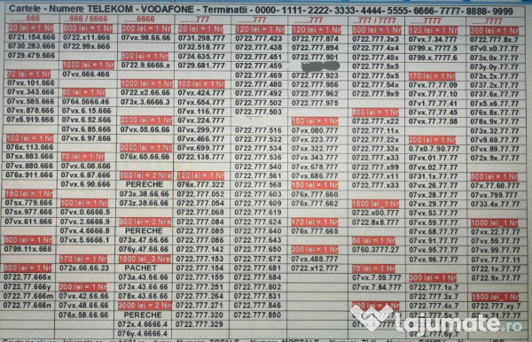 Vand Numere Usor de Retinut în rețelele Vodafone - Telekom - Orange, care incep si se termina în 3, 4 și 5 cifre identice.