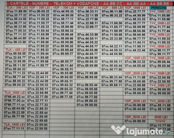 Numere prepaid - Ușor de Reținut in retelele Vodafone și Telekom - pe format - AA.BB.CC - AA.BB.AA - AA.BB.BB - AA.AA.BB