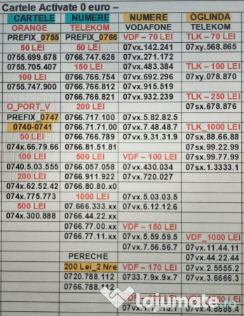 Vând Numere prepaid activate - Usor de Reținut in rețelele Vodafone, Telekom si Orange - cu prefixele 0722 - 0733 - 0755 - 0766 - 0799.