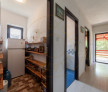 La parter, ai un dormitor matrimonial cu baie proprie, o bucatarie deschisa (care se poate inchide usor daca vrei separare), camara, baie de serviciu si camera tehnica. Doua terase iti dau variante pentru cafeaua de dimineata sau serile de vara. Tot parterul este mobilat si utilat, exact ca in poze. Incalzirea e pe lemne, cu centrala si calorifere – solutie simpla si eficienta.