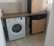 Garsoniera este dotata cu Smart TV, aer conditionat, mașină de spălat, un dressing generos, pat 120X200, multiple spații de depozitare, bucătăria inchisa, echipată cu combină frigorifică, aragaz, hota iar baia dispune de cada.