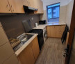 Bucătărie separată, complet utilată cu aragaz, frigider, cuptor cu microunde și spațiu de depozitare