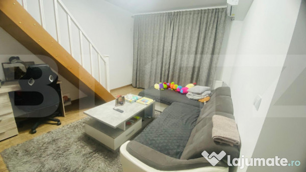 Blitz Imobiliare va propune spre vânzare un apartament deosebit, situat într-o zonă aflată în plină dezvoltare, la granița dintre Timișoara și Giroc (acces facil din Calea Urseni). Finalizat în anul 2019, acest imobil îmbină designul modern cu o compartimentare inteligentă pe două niveluri, oferind intimitatea și spațiul unei case.