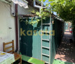 Casa are o amprenta de 70 de mp pe un teren de 118 mp, iar curtea ramasa libera se imparte intre drumul de acces lung de aproximativ 18 metri, de-a lungul caruia creste o vie roditoare, si o mica deschidere de spatiu in fata intrarii in casa. Gradina este mica si usor de intretinut si are spatiu pentru o masa cu scaune.