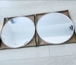 Doua Oglinzi rotunde, rama alba, dimensiuni 41 cm x 41 cm x 2 cm Oglinzile sunt sigilate, se vand doar impreuna, pretul este valabil pentru ambele oglinzi