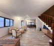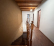 La etajul casei, tavanul este facut in stil rustic, grinzile fiind lasate aparente, iar intre ele avem lambriu.