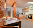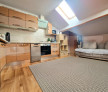 1 Living open-space cu bucătărie foarte luminată și spațioasă, dotată cu masină de spălat, uscător, cuptor,mașină de gătit, aparat de cafea, frigider, hotă, etc.