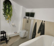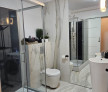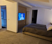 Nivelul 2: Hol cu spațiu de depozitare, dormitor cu baia proprie(lavoar, toaletă, cabină de dus) și terasă, dormitor matrimonial mare cu dresing și baie proprie(lavoar, toaletă, cabină de duș, cada), suprafața 75 mputili.