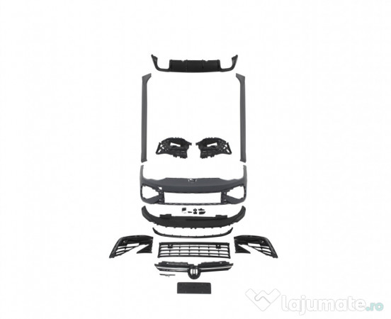 Pachetul include o bară față R-Line, grila emblematică, spoiler lateral și alte accesorii care completează designul aerodinamic. Toate componentele sunt fabricate din plastic ABS de înaltă calitate, rezistent la coroziune, zgârieturi și deteriorări cauzate de factori externi.