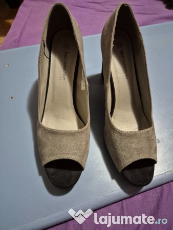 Pantofi pentru femei BPC Selection, piele intoarsa, produs in Germania, mărimea 42, toc 9cm, stare nouă, cu etichetă. Culoare gri.