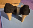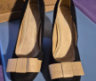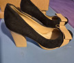 Pantofi de damă, mărime 40, din catifea, interior piele, toc 9,5cm, purtați o singură dată la un eveniment, în stare impecabilă. Culoare negru cu funda bej .