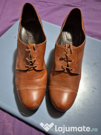 Pantofi dama din piele naturala, marimea 41, toc 8,5cm, culoare maro, purtati o singura data.