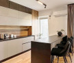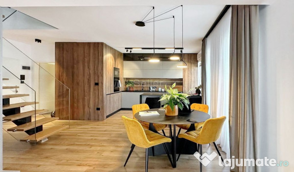 - Bucataria, de tip open space, cu deschidere la terasa de 10,78 mp, fiind mobilata si dotata;