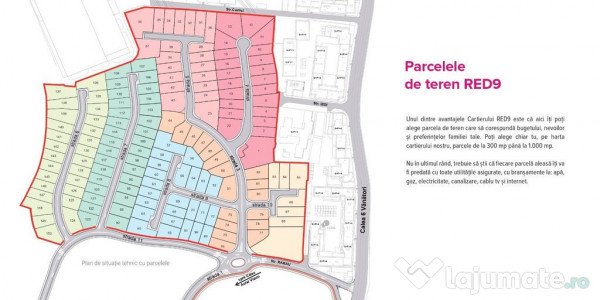 Infrastructură completă: drumuri asfaltate, iluminat stradal, camere de supraveghere, incintă privată cu pază 24h