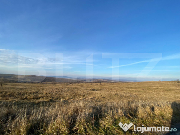 Blitz vă propune spre vânzare un teren intravilan de 1.477 mp în Chinteni, format din trei parcele alipite (420 mp, 440 mp și 617 mp), situat într-o zonă liniștită, cu panoramă deosebită. Terenul beneficiază de un front generos de aprox. 60 m la drumul asfaltat spre Măcicașu și are bransamentul de apă la frontul proprietății. Pentru utilități, se pot monta panouri fotovoltaice și fosa septică.