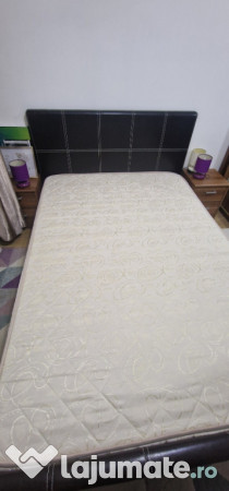 Pat Mobexpert tapițerie piele maro 140x200 cm cu somiera și saltea ortopedica incluse, 2 noptiere culoare veghe 35x38 cm, utilizate foarte puțin. Ridicare personala București sector 3.