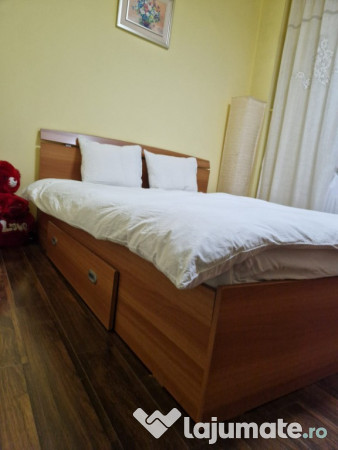 Patul fiind puțin folosit arată foarte bine, având dimensiuni 163/200 cm este perfect pentru două persoane, după cum se vede în poze are ladă laterală încăpătoare, pentru depozitare.