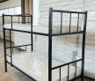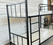 Pat etajat metalic, robust și fiabil, ideal pentru economisirea spațiului în dormitoare colective confecționat din țevi și profile groase (2-1,5 mm) cu suportul de saltea (somieră) complet metalica, din profile sau platbande sudate perimetral, cu o rezistență de 200-300 kg, avand prindere în șuruburi (8 șuruburi/somieră).