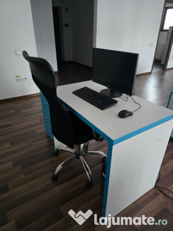 8 x masa birou 60x100cm + comoda cu roti si 3 sertare 65x40x54cm