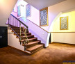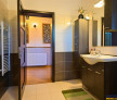 Accesul intre demisol si mansarda se face pe o scara ampla si eleganta, imbracata in detalii de fier forjat si iluminata de un candelabru din cristal.