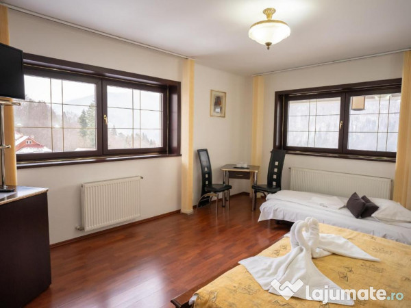 Agentia noastra vă ofera spre achiziție un imobil modern, amplasament deosebit,acces stradal,locuri de parcare,imobil spațios, luminos, cu o panoramă deosebită asupra orașului, amplasat într-o zonă foarte liniștită din localitatea Sinaia, județul Prahova, zona ultracentrală, la doar 500 m (aproximativ 7 minute de mers pe jos) de centrul orașului.Proprietatea prezentată este situată pe un teren de 747 mp. cu deschidere de 25 ml la drum asfaltat ,amprenta construcției fiind de 280 mp.Inginer constructor de profesie, proprietarul a realizat construcția în regie proprie, alegand cea mai frumoasa locatie ce ofera acces si panorama spectaculoasa catre toata Valea Prahovei,fără a face rabat de la calitate.Imobilul a fost construit în anul 2008, pe o structură de rezistență din cadre de beton armat și zidărie portantă, cu plăci de beton de 14 -18 cm grosime.Au fost executate numeroase lucrări de sistematizare verticală, incluzând ziduri din beton armat cu fundații de 1,20 m adâncime, zidărie și placaje din piatră, socluri, elemente din fier forjat etc.Pe teren se află două construcții, C1 și C2 reprezentand o zona de agrement de cca 115 mp, iar suprafața utilă totală însumată este de 1.215,11 mp, desfășurată pe S1 (Hof parter) + S + P + 1 + M.