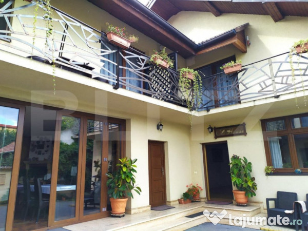 Blitz ofera spre vanzare pensiune in zona Cetatii Alba Carolina, utilata si mobilata, ideala pentru a fi folosita in regim hotelier datorita amplasametului foarte bun si faptului ca este adaptata pentru acesasta activitate. In prezent functioneaza ca pensiune. Casa dispune de 12 camere dintre care 5 dormitoare cu baie proprie si dressing, 2 bucatarii, 2 terase, 2 pivnite. Cu o suprafata construita de 503 mp pe un teren de 690 mp. Construita in anul 2009, cu materiale de cea mai buna calitate si finisaje pe masura. Este o constructie spectaculoasa care nu mai necestita absolut nici o alta investitie.