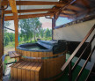 Pensiunea este completată de o terasa acoperită dotată cu loc de luat masa, zone pentru depozitare, frigider, chiuvetă, loc de grătar construit. Pentru și mai multă relaxare dispune de un ciubăr cu hidromasaj.