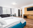 - Număr camere: 8 camere spațioase și luminoase, fiecare dotată cu baie proprie și frigider.