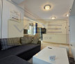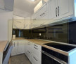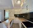 Cum ajungem la etajul 12, regasim un dressing foarte generos, de 3 m latime pe 2,8 inaltime, un birou ( camera de copil/ dormitor) cu balcon propriu, o baie cu dus dublu, o bucatarie complet echipata si facuta la comanda din MDF , configurata intr-o varianta open space cu livingul .