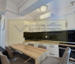 Cum ajungem la etajul 12, regasim un dressing foarte generos, de 3 m latime pe 2,8 inaltime, un birou ( camera de copil/ dormitor) cu balcon propriu, o baie cu dus dublu, o bucatarie complet echipata si facuta la comanda din MDF , configurata intr-o varianta open space cu livingul .