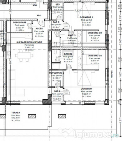 2 dormitoare matrimoniale, fiecare cu baie și dressing propriu