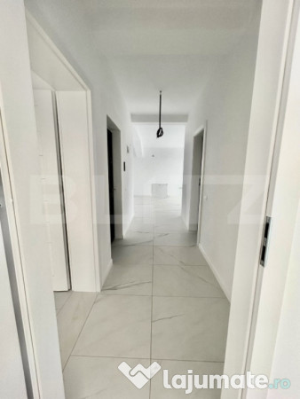 Blitz are placerea sa va prezinte spre vanzare un apartament cu 3 camere, localizat la limita zonei intre Giroc si Timisoara. Acesta este situat la etajul 3 intr-un imobil cu regim de inaltime P+3E. Constructia imobilului este noua si izolata. Suprafata utila a apartamentului este de 70 mp utili + 30 mp balcon. Detine incalzire in pardoseala, centrala proprie pe gaz si se preda finisat la cheie. Pentru mai multe detalii, va invitam la o vizionare.