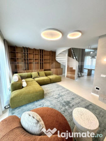 Blitz va propune spre vanzare un Penthouse deosebit pe 2 niveluri , in zona Semicentrala. Un penthouse de 90 de metri pătrați, situat într-o zonă semicentrală, cu finisaje de lux și dispus pe două nivele, oferă un spațiu de locuit excepțional, combinând confortul și eleganța într-un cadru modern și stilat. Iată o descriere detaliată: