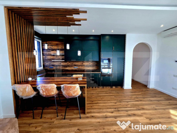 Această proprietate deosebită este ultra-finisată cu bun gust, oferind un ambient modern și rafinat, ideal pentru cei care caută un stil de viață premium. Locuința impresionează prin vederea panoramică spectaculoasă către pădure, oferind un cadru liniștit și relaxant chiar în inima orașului.