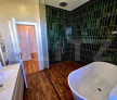 Baie spațioasă, dotată atât cu cadă, cât și cu cabină de duș