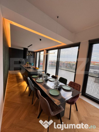 Blitz va propune spre inchiriere un apartament de lux cu 4 camere, 2 bai și facilități de lux în zona centrala a Craiovei. Cu o suprafață generoasă de 113 metri pătrați utili si 73 mp terasa acest spațiu oferă o atmosferă de rafinament și confort, perfectă pentru un stil de viață urban contemporan. Imobilul este dotat cu centrală termică pentru a asigura căldură și confort pe tot parcursul anului, aer condiționat pentru a vă răcori în zilele calde de vară, mașină de spălat rufe și mașină de spălat vase pentru a simplifica activitățile casnice, espressor de cafea pentru a vă începe ziua într-un mod plăcut, cuptor și aragaz electric pentru preparate culinare delicioase, frigider modern pentru a vă păstra alimentele proaspete, video interfon pentru securitate și acces ușor. Acest apartament este amplasat într-un bloc cu un design modern, situat într-o curte frumos amenajată, oferindu-vă o atmosferă liniștită și privată în mijlocul agitației orașului. Beneficiind de facilități precum locul de parcare privat și accesul securizat în curte cu telecomandă, acest apartament este alegerea perfectă pentru cei ce apreciază confortul, siguranța și eleganța. Pentru mai multe detalii, va asteptam cu drag la vizionare!