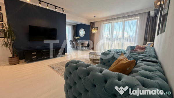 Apartamentul se vinde mobilat si utilat cu: plita electrica cuptor, hota, masina de spalat rufe, uscator rufe, masina de spalat vase, frigider cu congelator, cuptor cu microunde, espressor de cafea.