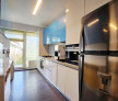 O bucătărie închisă cu perete de sticlă, complet echipată, cu acces direct la balcon – locul perfect pentru cafeaua de dimineață
