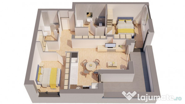 - 2 dormitoare (unul matrimonial cu baie și dressing)