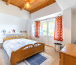 Mansarda (20 mp utili) găzduiește un dormitor cochet, cu baie proprie și balcon – un colț de refugiu scăldat în lumina dimineților alpine.
