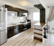 - Bucataria, de tip open space, aceasta fiind mobilata si dotata cu plita, cuptor, hota, frigider, masina de spalat vase, etc,;