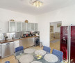 - bucataria, care este inchisa, mobilata si dotata cu plita, cuptor, frigider, hota, masina de spalat rufe si masina de spalat vase, in aceasta fiind inclusa si o zona de dining;