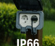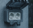Priză dublă Schuko, concepută special pentru exterior, cu protecție IP66 — rezistentă la apă și praf, ideală pentru grădină, garaj, terasă, curte, pivniță, piscină sau orice spațiu expus la intemperii.