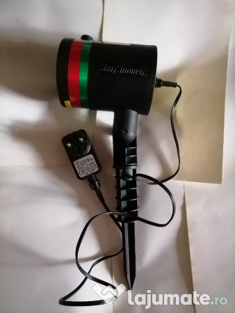Proiector lumini laser pentru sărbătorile de iarnă. Este pentru exterior, dar se poate folosi și la interior. Proiecția este în două feluri - roșie și verde sau doar verde. Merge la curent 220V, are transformator.